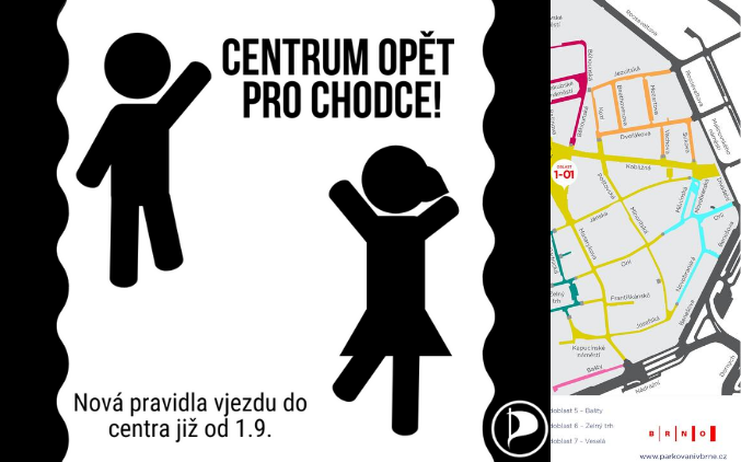 Centrum bude nově rozděleno na 7 podoblastí: Pěší zóna, Rašínova, Jezuitská, Měnínská, Bašty, Zelný trh, Veselá. Do každé z podoblastí bude vydáváno vjezdové oprávnění zvlášť a držitel se bude moci s vozidlem pohybovat jen v dané podoblasti. Žádné oprávnění nebude nutné Bez oprávnění budou moci řidiči pouze do podoblasti Veselá, aby se lidé mohli dostat do podzemních garáží ve Velkém Špalíčku. Rozdílem je, že na ulici Veselá již nebude moci žádný návštěvník parkovat. Parkovat budou moci pouze držitelé dlouhodobé parkovacího oprávnění. To bude nově odděleno od vjezdového oprávnění, čímž si město slibuje úbytek aut v historickém centru.