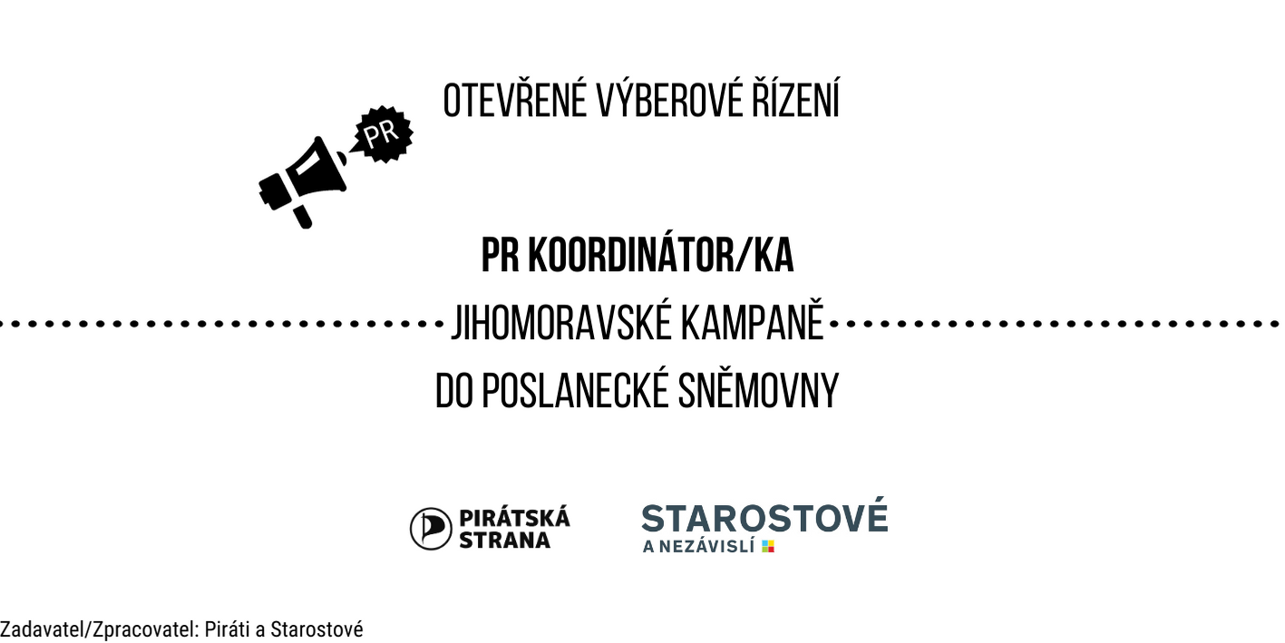 Koaliční volební výbor Pirátů a STAN v Jihomoravském kraji vyhlašuje výběrové řízení na pozici PR koordinátor/ka volební kampaně pro volby do Poslanecké Sněmovny 2021 ve dnech 8. a 9. října 2021. Poptáváme především zodpovědnou a akční osobu, která umí pracovat pod tlakem a dobře zvládá krizové situace.